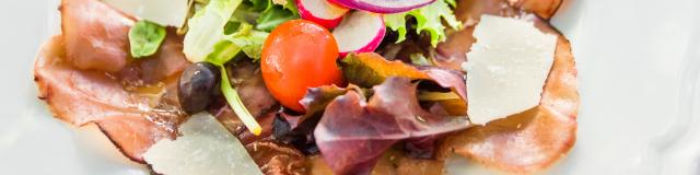 Une salade aux produits de pays qui sent bon le soleil de provence. Quelques tomates et du fromage de brebis pour accompagner cette délicieuse secca de boeuf, spécialité d’Entrevaux. A déguster à tout prix lors de votre séjour.