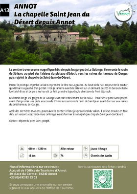 Mostly shaded at the start, the path joins the Pont Saint-Joseph. It climbs up the St-Jean ravine, at the foot of the cliffs of the Educh plateau, to the ruins of the hamlet of Ourges. The climb is steeper up to the chapel of Saint-Jean-du-Désert.