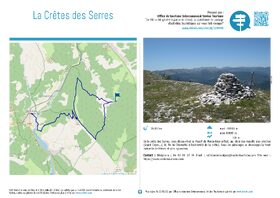 Emprunter à pied la même route pour sortir du village. Après avoir parcouru 250 m, prendre la première à gauche. Continuer sur 2 km cette route, qui se transforme en piste en direction du pied de la montagne de la crête des Serres. A partir de ce point, la montée va commencer.