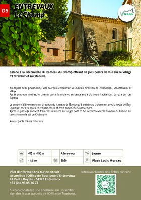 A few metres after this junction, the path begins to descend. After a passage through the forest, cross the Ribière on an attractive wooden bridge and discover the hamlet of Champ in Val de Chalvagne.
