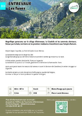 Magnificent panorama of Entrevaux village, the Citadel and surrounding peaks. Return via La Seds, where the first inhabitants settled during the Roman Empire.