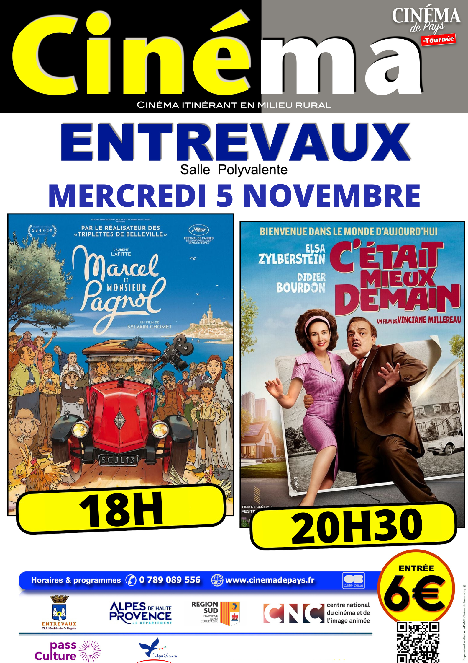 Le cinéma de pays vous propose deux séances de cinéma, à 18h : Marcel et Monsieur Pagnol et à 20h30 : C’était mieux demain.