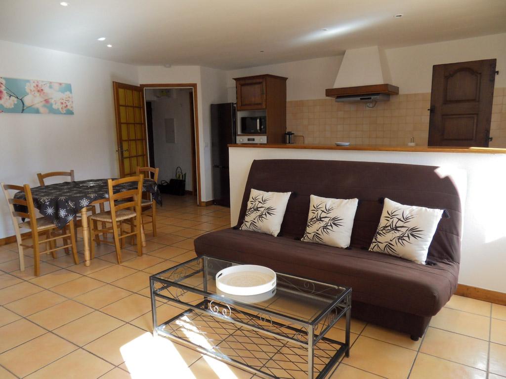 – 1 living room with open-plan kitchen and lounge area with sofa bed