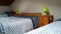 – 1 attic bedroom with 1 bed 140 and 2 beds 90