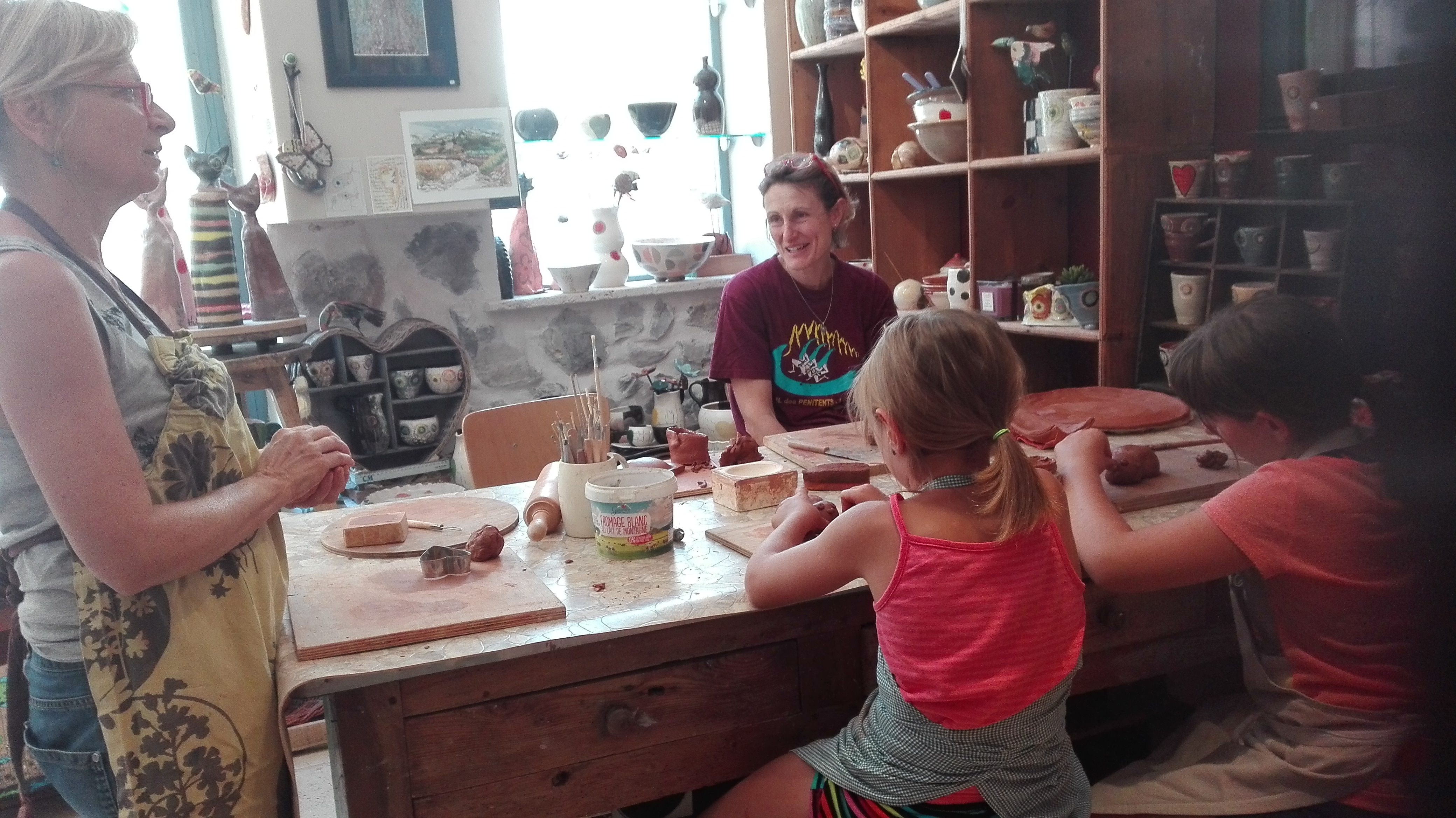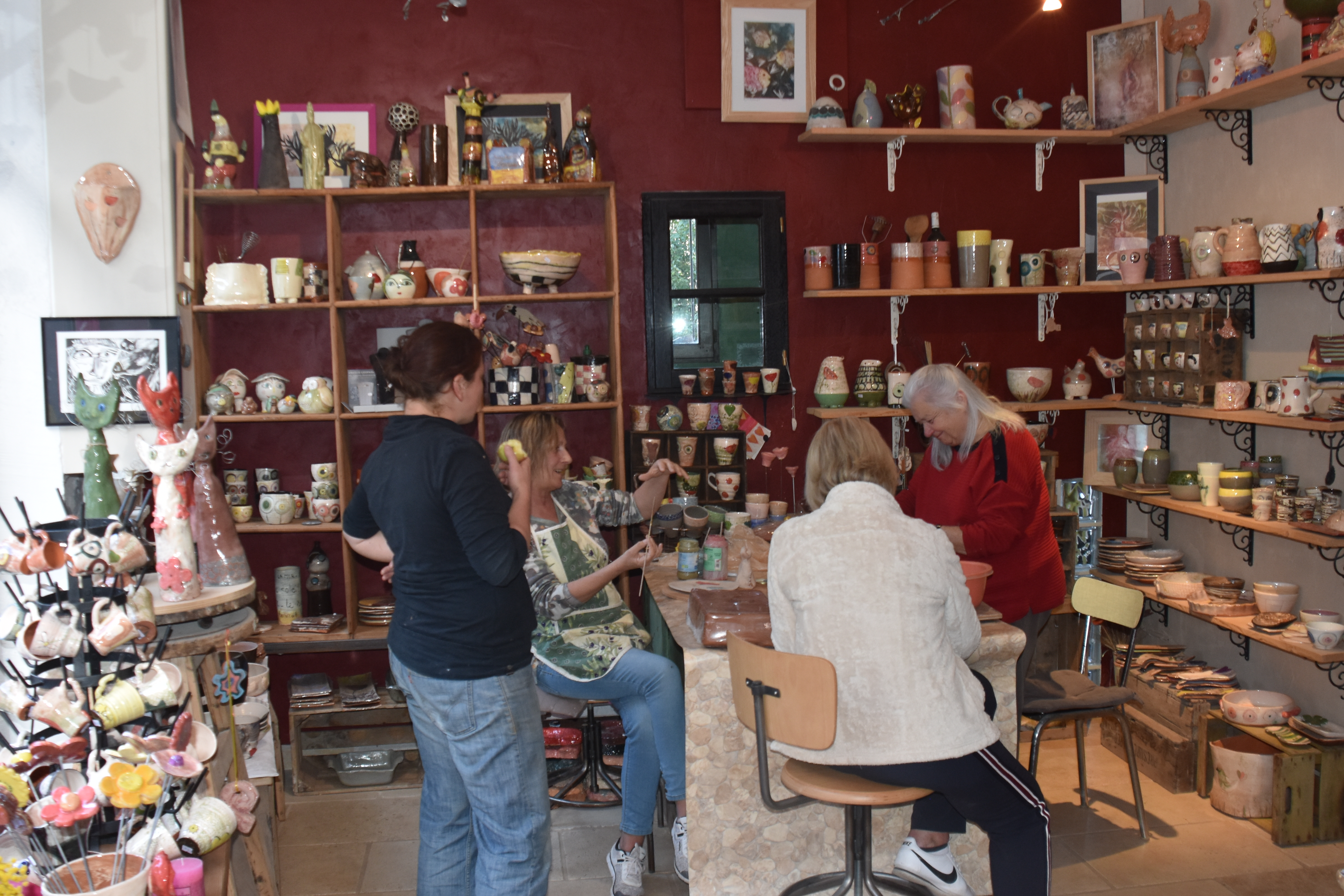 Atelier d’art et de céramiques. Boutique sur place. Poterie, bijoux, gravures, photographies, cartes postales. Possibilité de stages de poterie et de séance d’art – thérapie sur demande, individuels ou groupe.