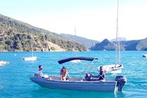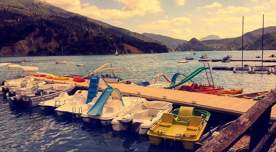Base de loisirs nautiques sur le lac de Castillon. Matériel à la location et services : bateaux à moteur (sans permis), bateaux à pédales avec toboggans, canoës / kayaks.