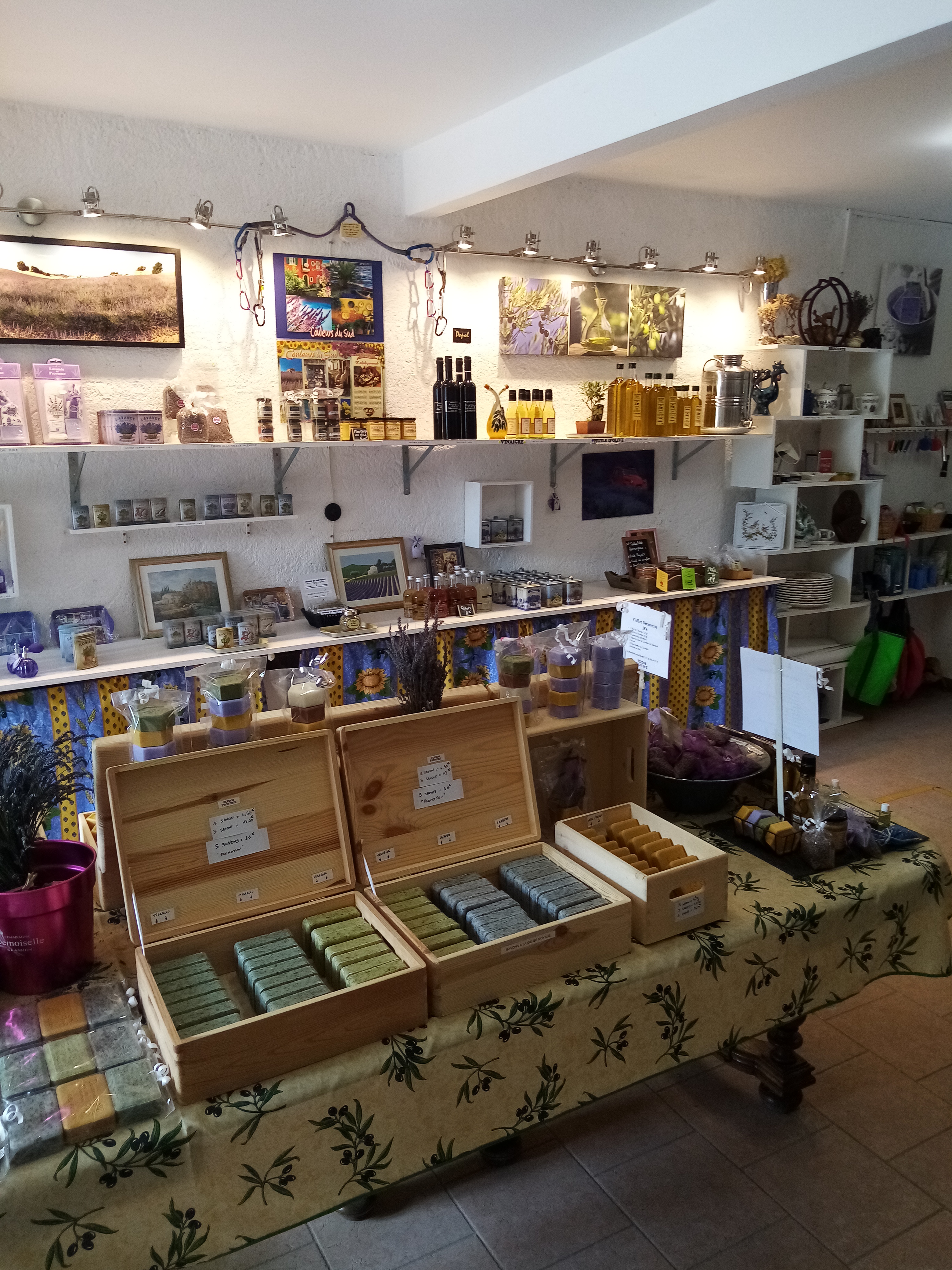 – Cosmétiques de Provence : savons artisanaux, huile essentielle de lavande fine et essence de Lavandin, parfums, diffuseurs d’huiles essentielles.