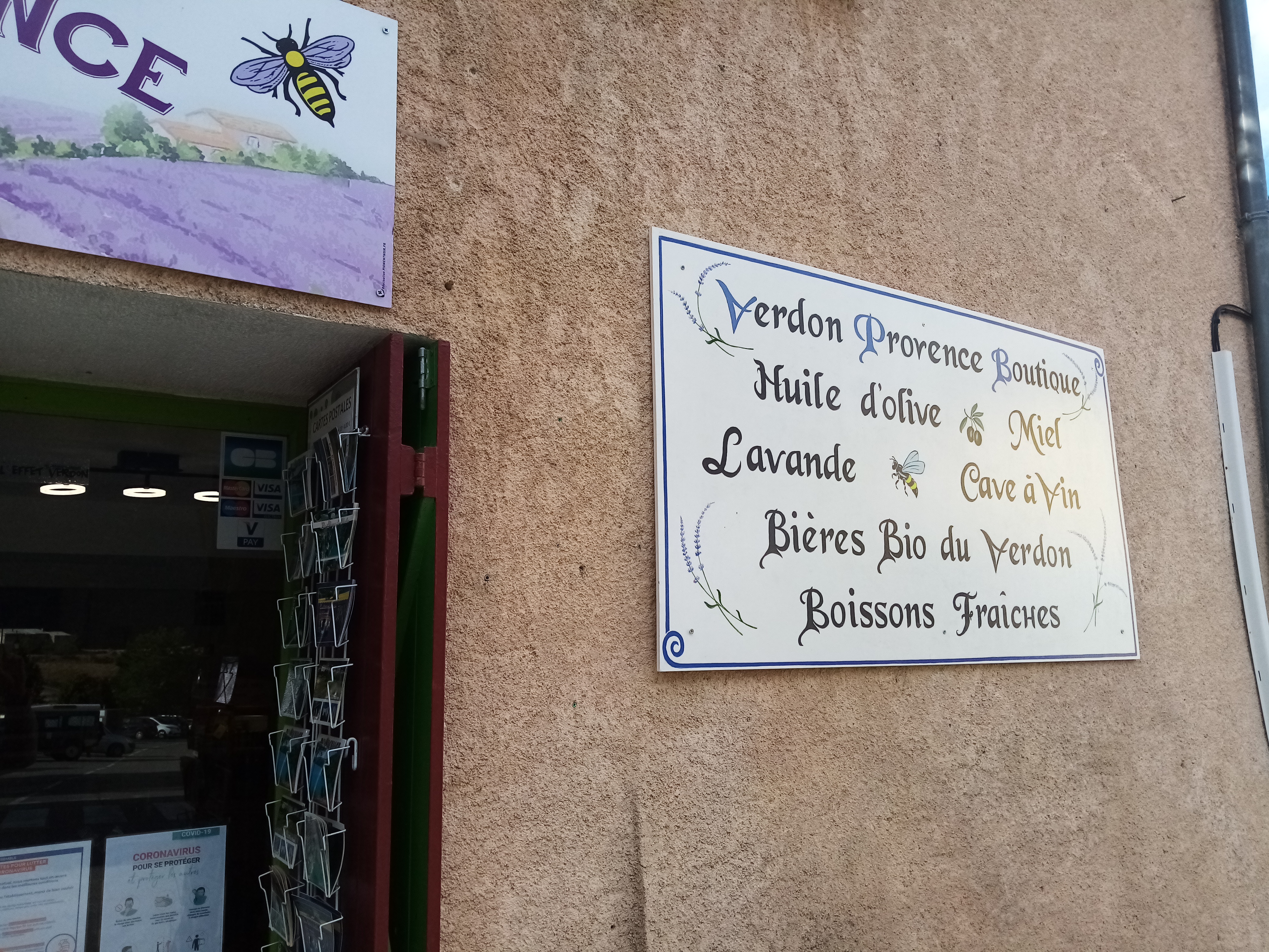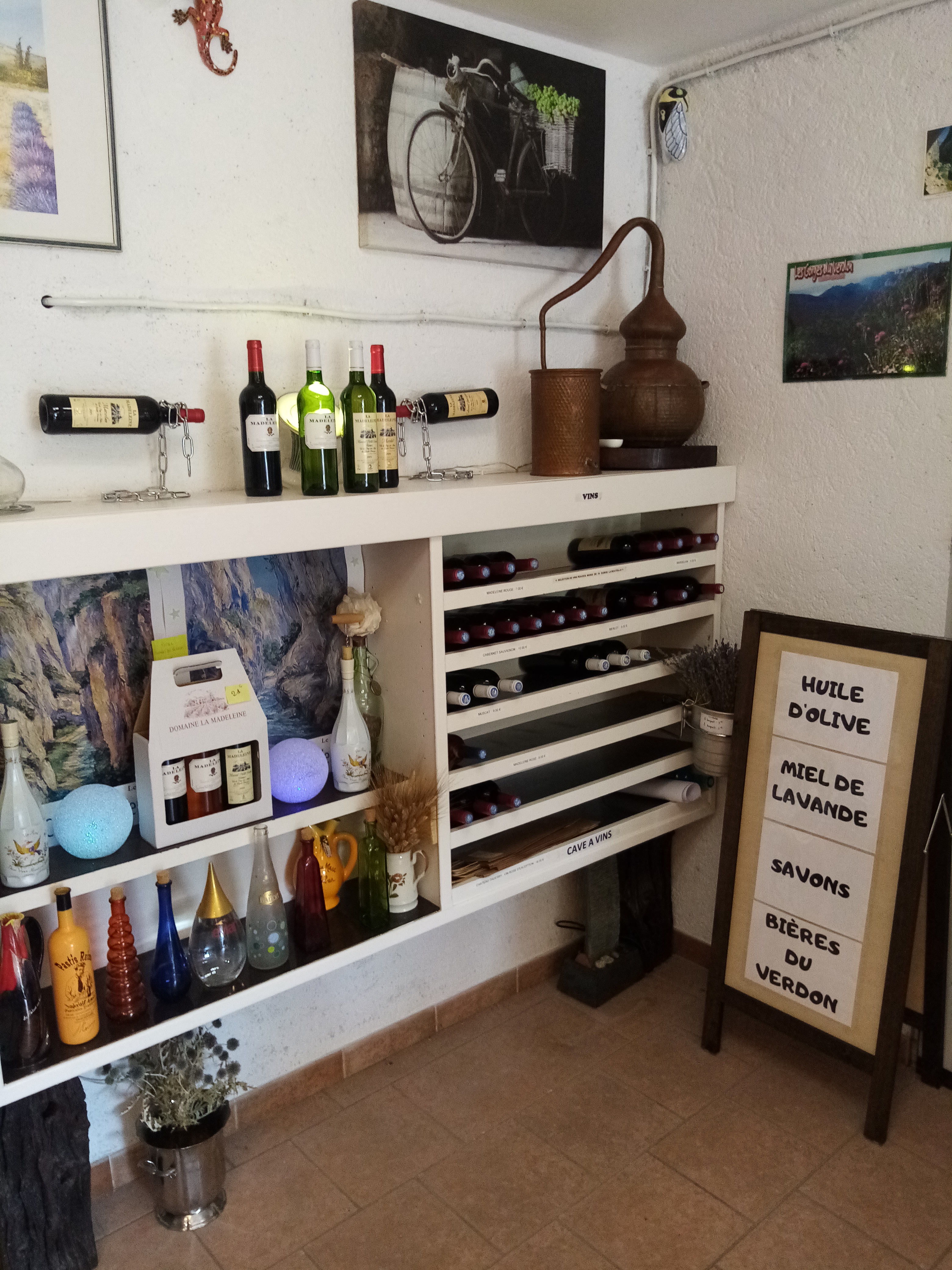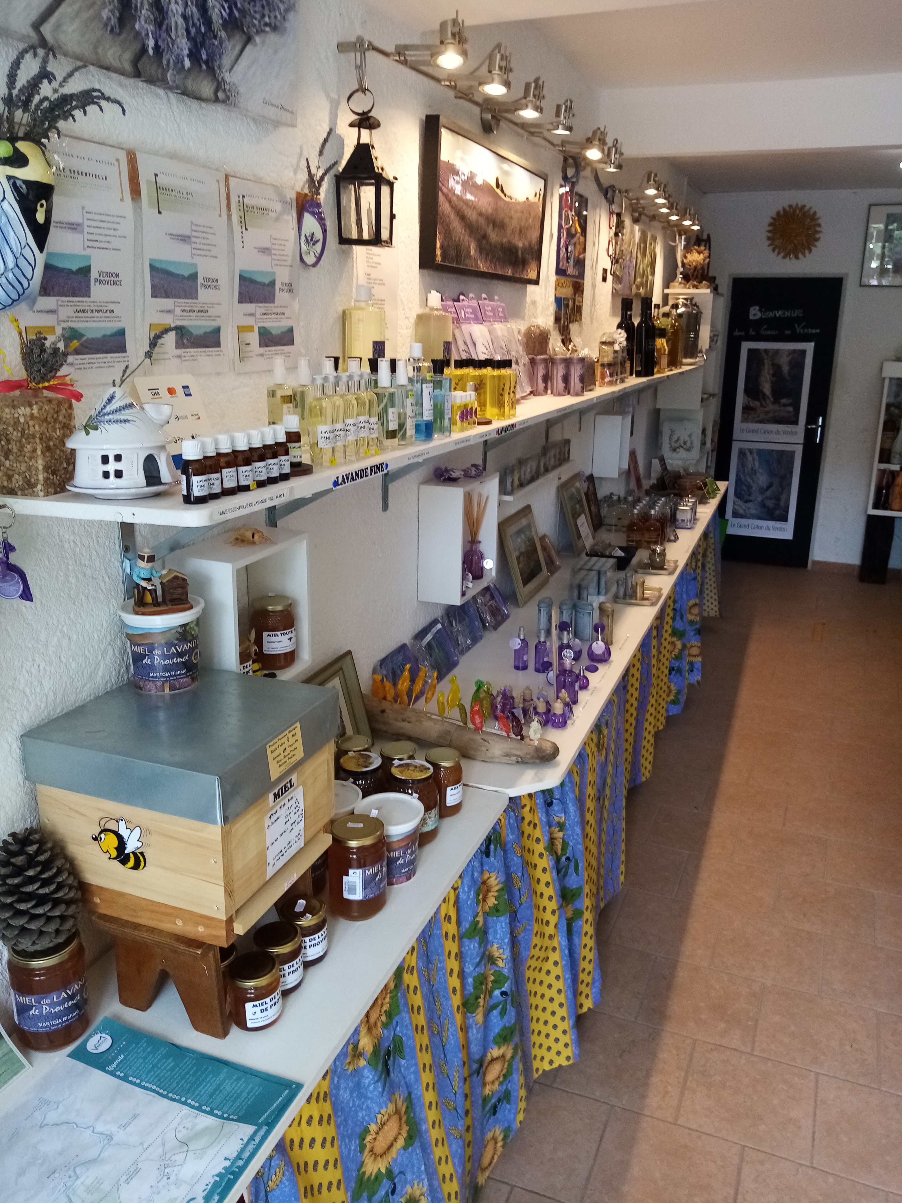 Au centre du village, découvrez chez nous une sélection de produits du Verdon (tee-shirts, céramiques, huile d’olive, vinaigres, miel, bières bio du Verdon, savons, huile essentielle de lavande). Dégustation de produits gratuite.