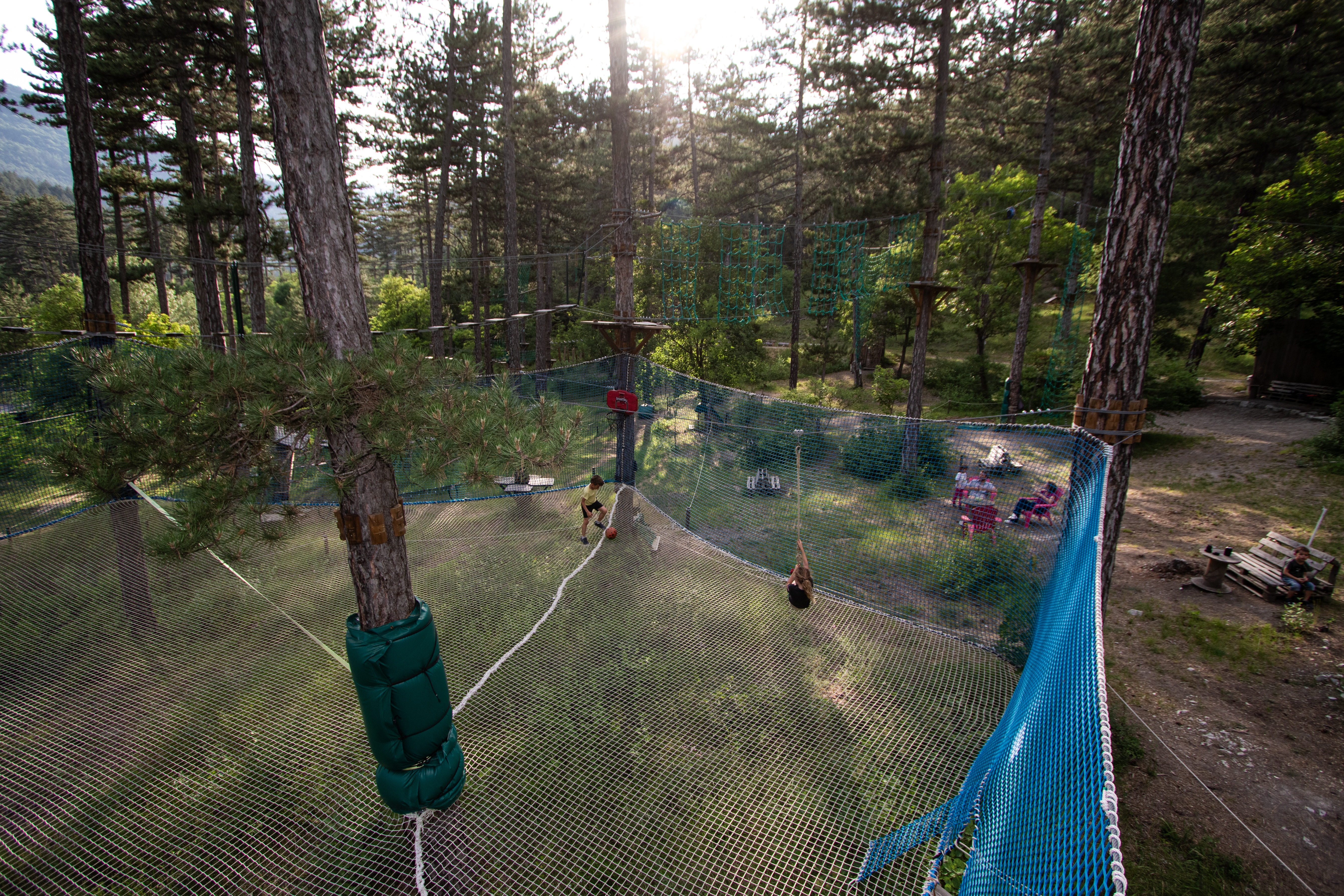 – Plusieurs parcours acrobatiques en hauteur de différents niveaux pour enfants et adultes, dès 3 ans.