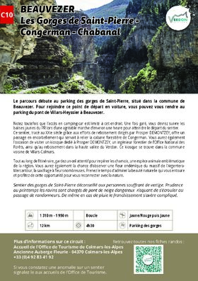 Après avoir exploré la cabane de Chabanal, rebroussez chemin jusqu’au panneau indicatif et poursuivez votre descente. Neuf lacets plus tard, vous rejoindrez le chemin initial des gorges de Saint-Pierre. Reprenez alors le chemin le long du torrent en rive droite et laissez-vous imprégner une dernière fois par la beauté de ce paysage avant de retourner au parking.