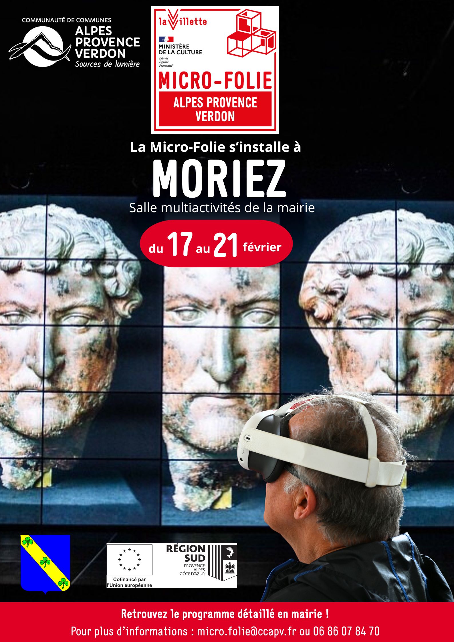 La Micro-Folie itinérante Alpes Provence Verdon s’installe à Moriez ! La Micro-Folie c’est un musée numérique, un espace de réalité virtuelle, un fablab et une ludothèque. Une programmation riche et ludique vous attend pour petits et grands.