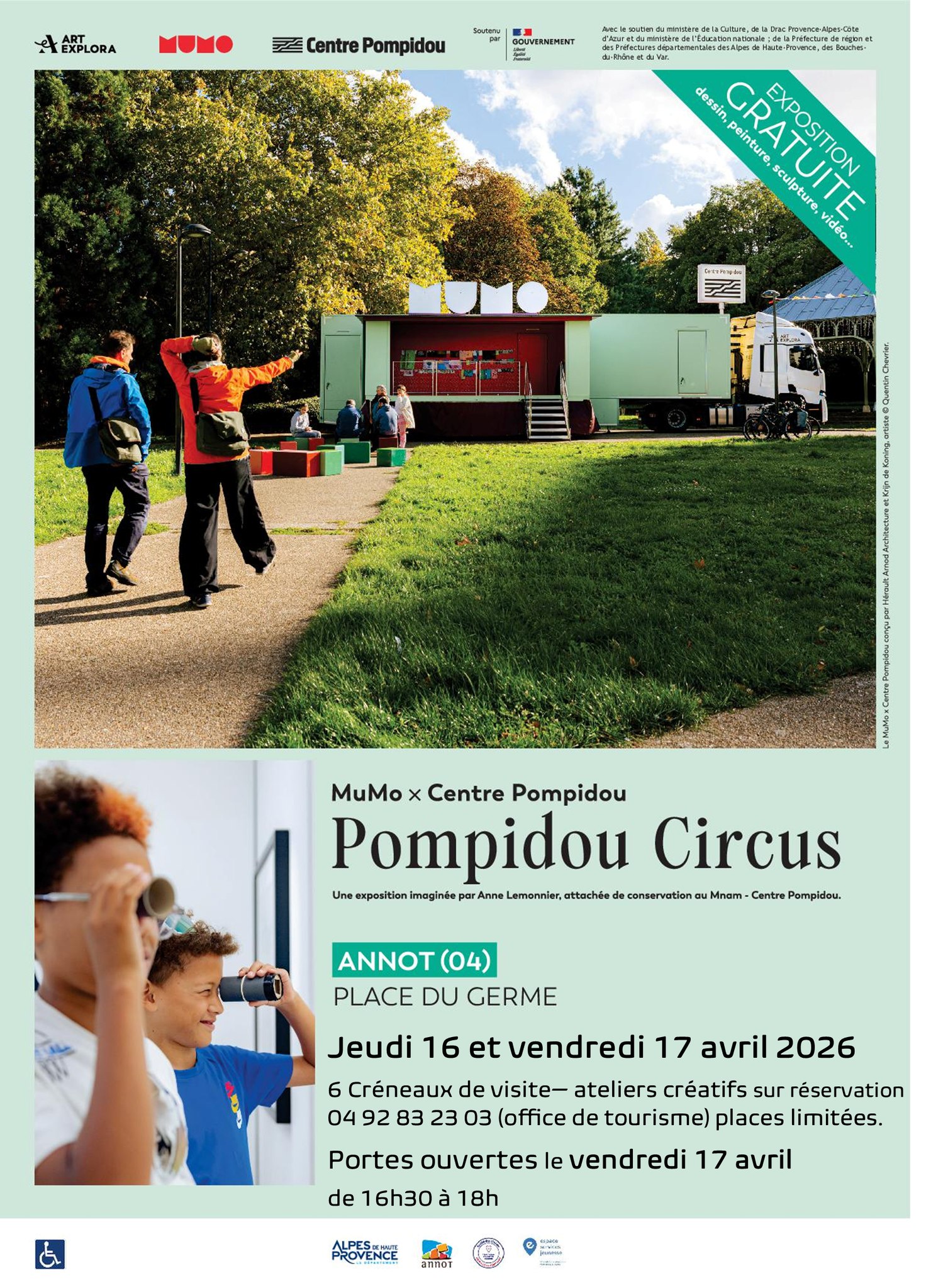 Un temps est prévu pour la visite libre des œuvres et un temps d’ateliers créatifs accompagnés de médiateurs et médiatrices.