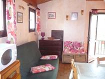 – 1 séjour avec coin cuisine et coin salon comprenant un canapé convertible 2 places