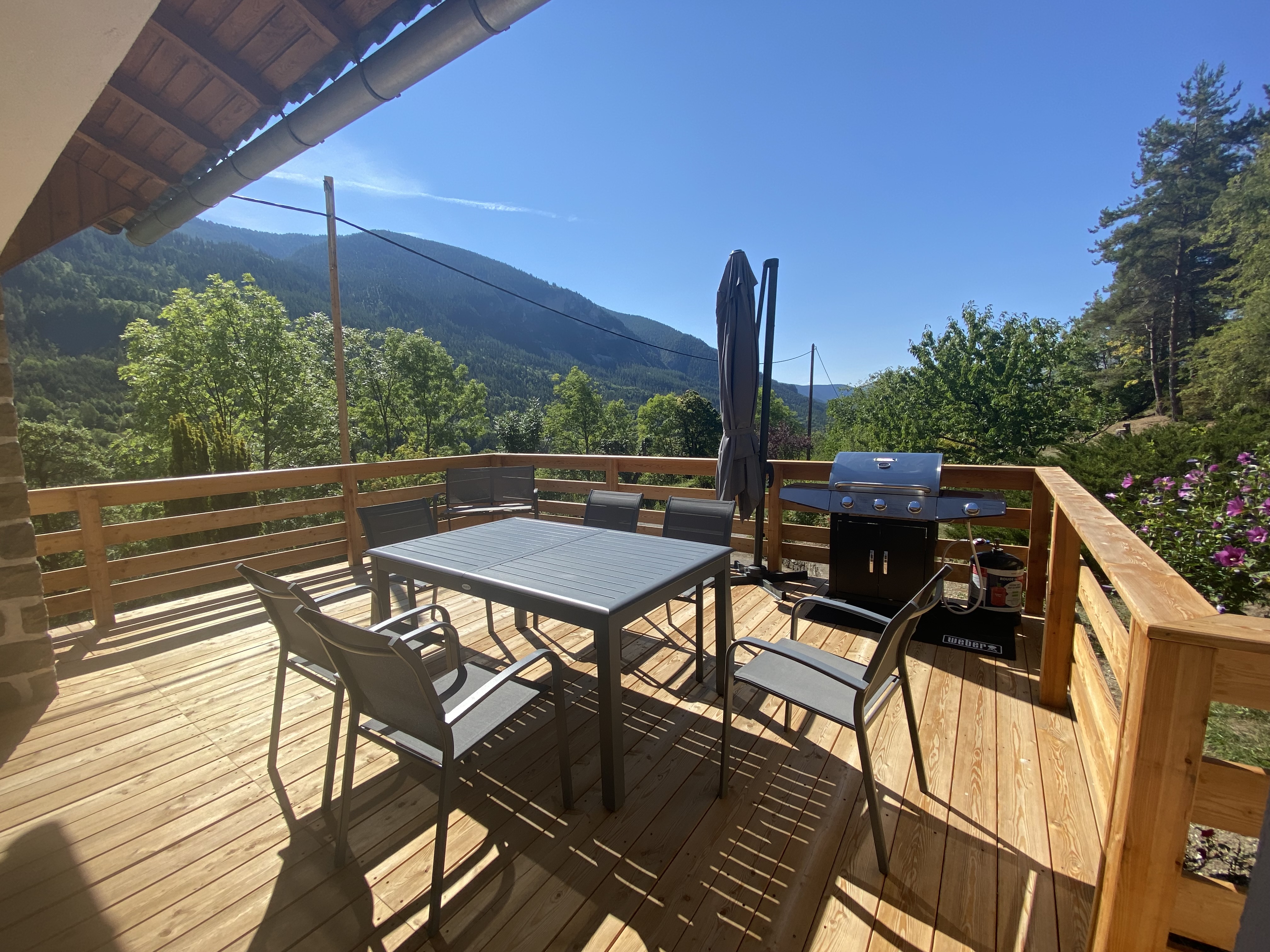 Chalet entièrement rénové en 2021 situé dans un quartier calme avec vue dégagée sur les montagnes du Mercantour, à 1 km du village fortifié de Colmars-les-Alpes et de ses commerces.