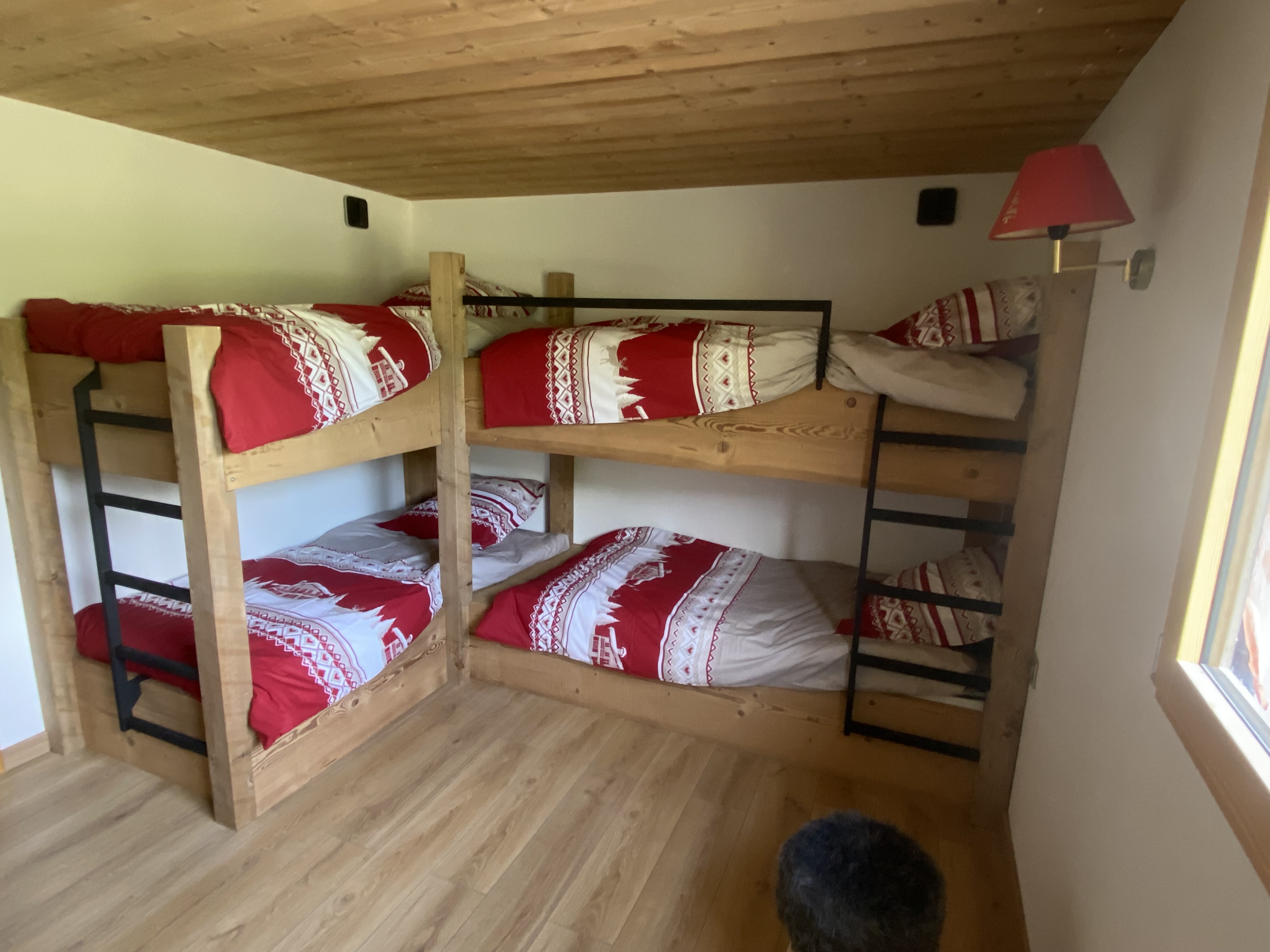 – 1 chambre enfant avec quatre lits simples et coin télé.