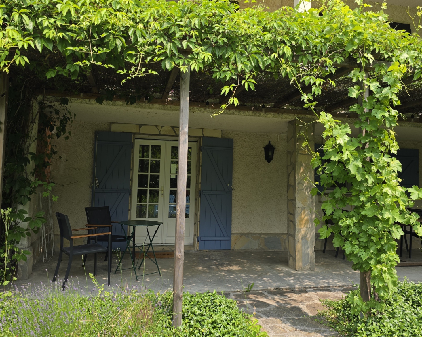 *** Chambre Laure : Notre suite spacieuse avec accès direct au jardin. Profitez d’un lit king-size (180 cm) et d’une grande salle de bain avec baignoire et douche. Idéal pour les familles (lit bébé disponible).