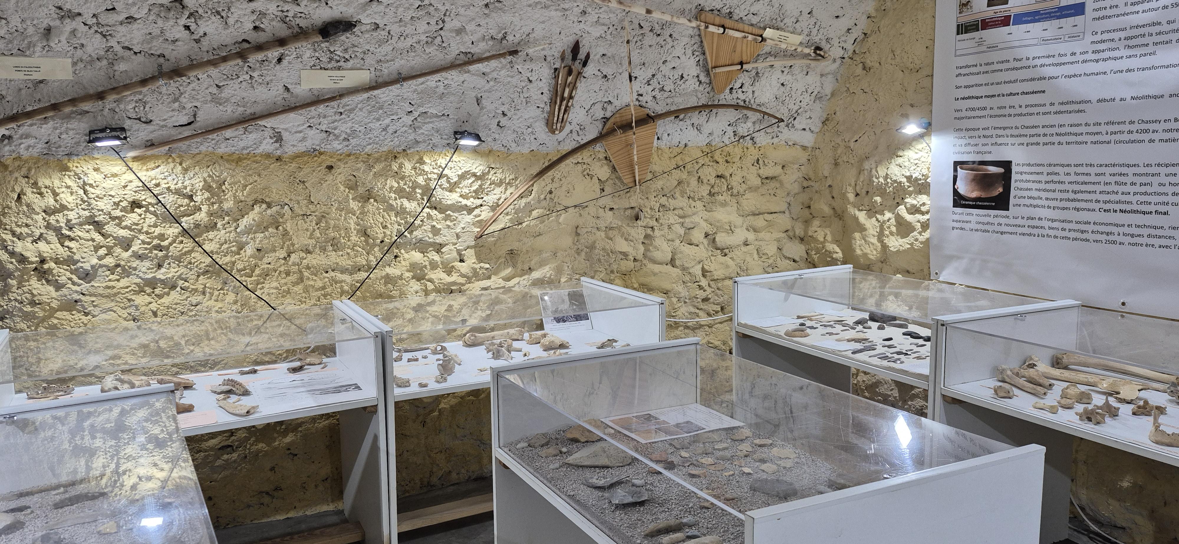 Exposition des artéfacts trouvés dans les grottes de St Benoît et de Méailles lors de ces fouilles.
