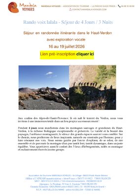 Randonnée itinérante avec exploration vocale. 4 jours pour faire frétiller les jambes et vibrer les cordes vocales en immersion totale dans un lieu propice au ressourcement. Sur le chemin, nous profiterons de lieux inspirants pour faire résonner nos voix.