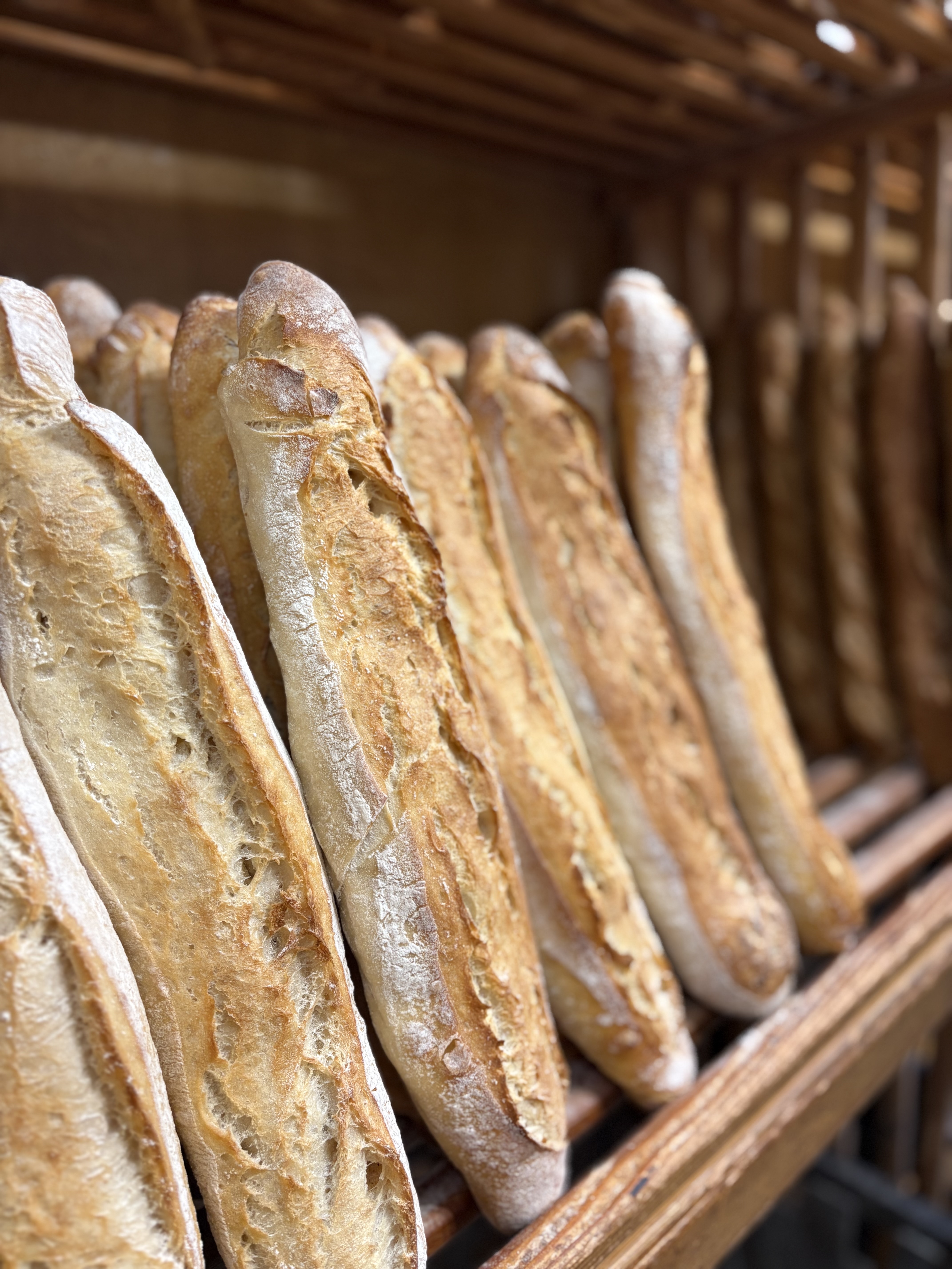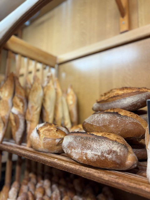 Pasticceria e pane fatti in casa, pane lievitato naturalmente, pane di farro. In stagione, pizza al metro, snack.
