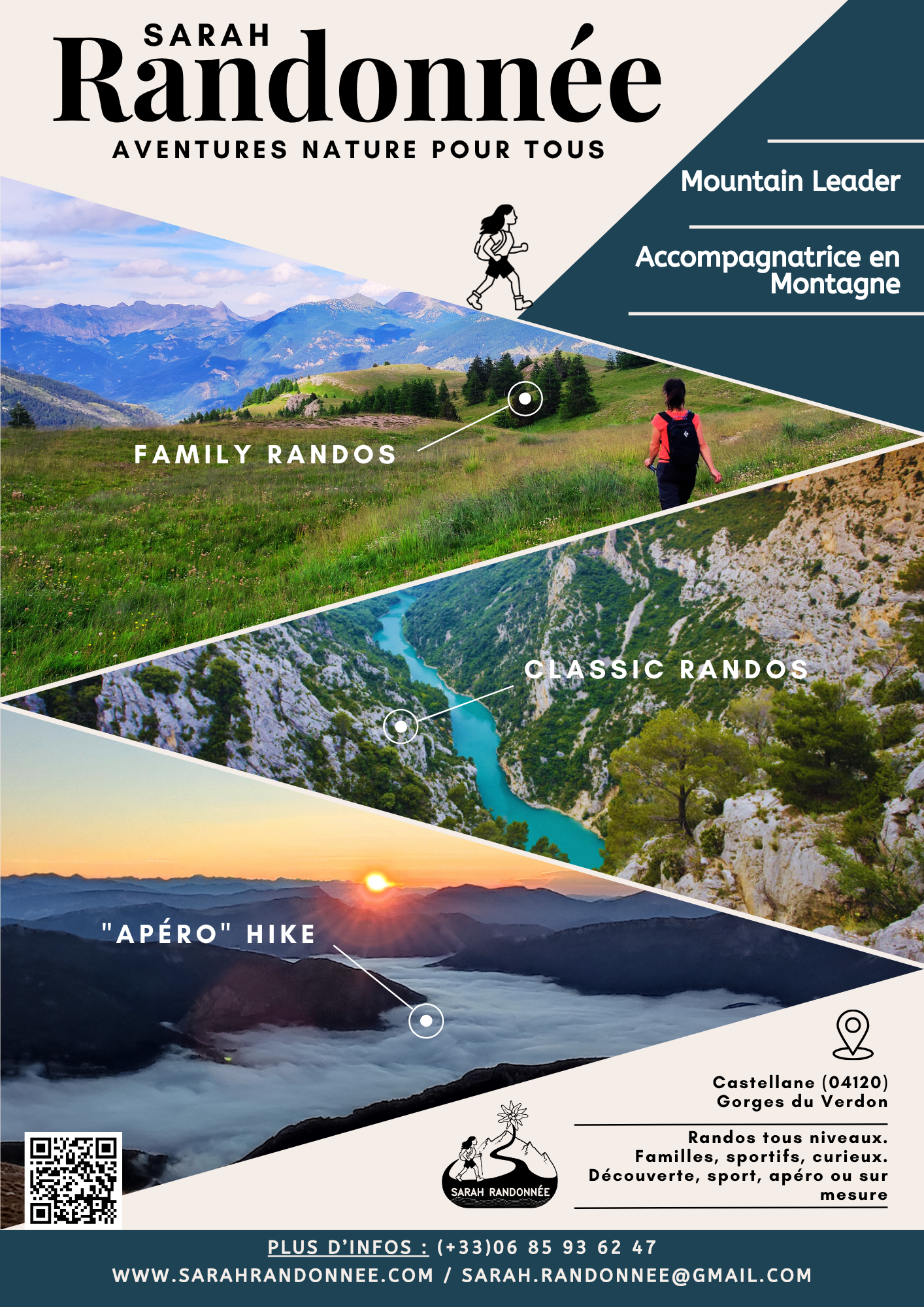 Accessible, conviviale, curieuse et toujours à votre écoute, Sarah vous propose des randonnées adaptées à votre niveau.
