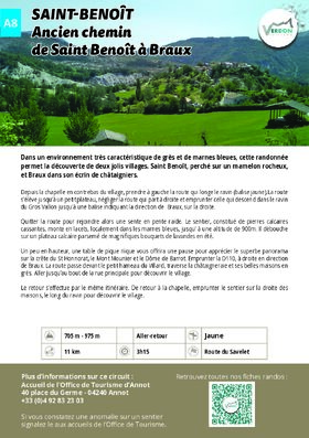 Depuis la chapelle en contrebas du village, prendre à gauche la route qui longe le ravin (balise jaune).La route s’élève jusqu’à un petit plateau, négliger la route qui part à droite et emprunter celle qui descend dans le ravin du Gros Vallon jusqu’à une balise indiquant la direction de Braux, sur la droite.