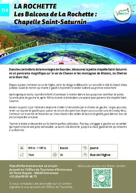 Tourner à droite et descendre sur le chemin parfois caillouteux. Plus bas, s’engager à gauche sur un sentier qui rejoint ensuite une piste carrossable. La suivre à la descente jusqu’à la route goudronnée qui retourne à La Rochette.