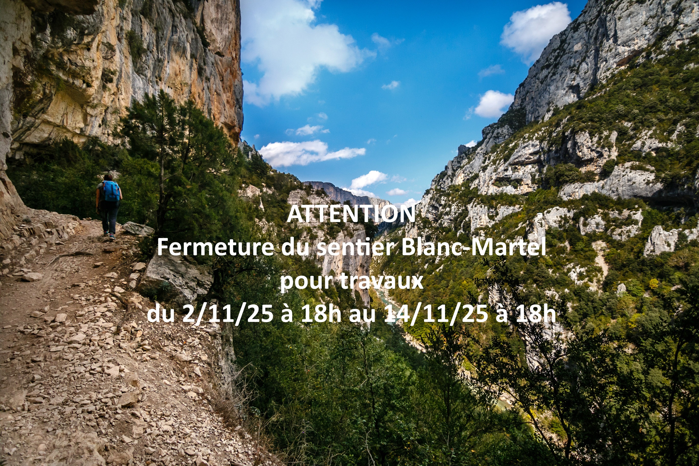 Le sentier Blanc-Martel est un aller simple entre le Chalet de la Maline à La Palud-sur-Verdon et le Point Sublime à Rougon. Une navette est mise en place en saison : vous la prenez le matin à partir de la Palud-sur-Verdon, jusqu’au Chalet de la Maline (départs à 8h30, 9h30, 10h30 selon la période). Elle vous ramène ensuite l’après-midi du Point Sublime à La Palud-sur-Verdon (16h, 17h, 18h selon la période). Réservations en ligne uniquement : navette.parcduverdon.fr
