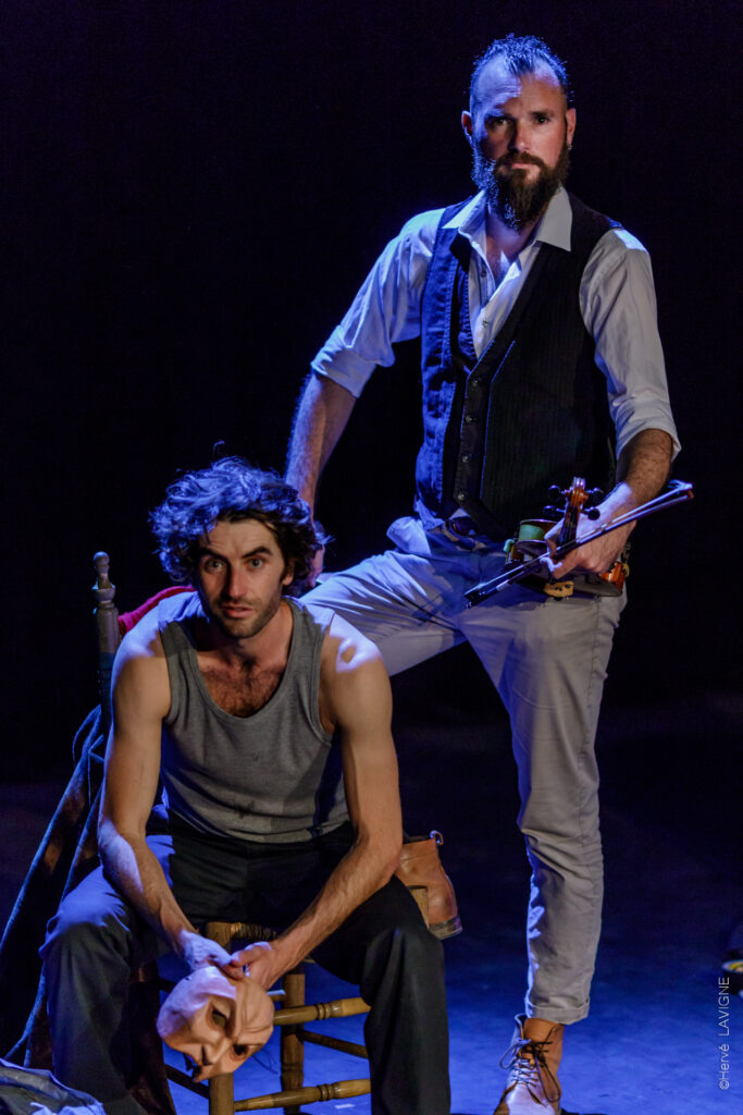 MACBETH est un duo comique, mêlant théâtre, musique et bruitage, qui utilise astucieusement l’art du masque, la manipulation d’objet, la musique live et le bruitage pour adapter Shakespeare de façon décalée – tout en préservant les grands thèmes et émotions de la tragédie. Un spectacle né de la rencontre d’un comédien seul pour jouer les quelques 170 pages parmi les plus sombres du théâtre shakespearien, et d’un compositeur de musiques de cinéma. Ensemble, ils défendent l’idée, et la prouvent, que le théâtre même tragique, doit garder sa place aux côtés de Netflix et Hollywood.