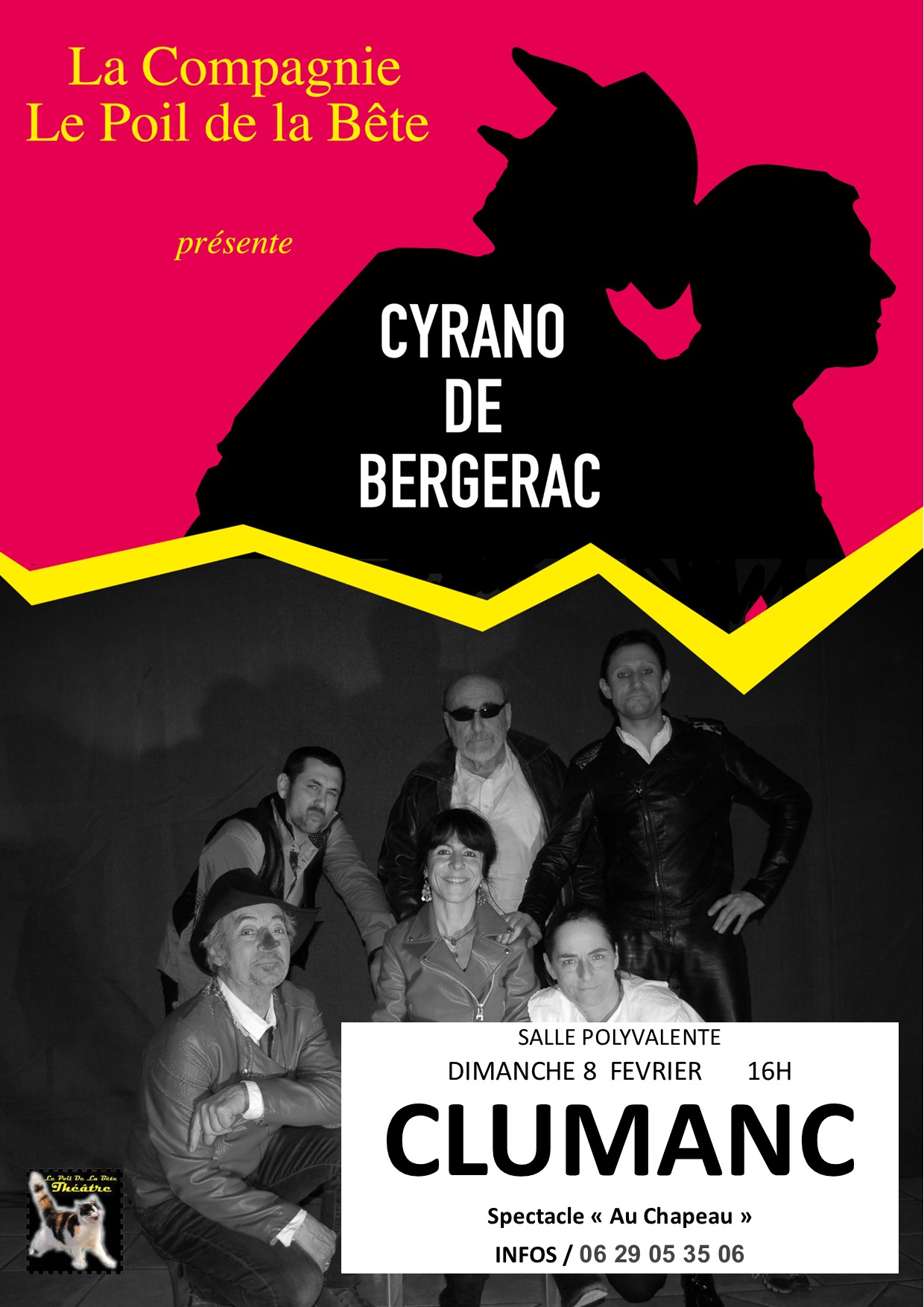 Cyrano de Bergerac, une œuvre intemporelle, un monument national, qu’en faire ? et comment ? Le Poil de La Bête en propose une version raccourcie certes, mais qui reste néanmoins fidèle au chef-d’œuvre d’Edmond Rostand. Une version plus rock and roll que chevaleresque avec des costumes et des décors quelques peu chamboulés. Néanmoins les puristes pourront retrouver les principaux héros ainsi que les scènes emblématiques : Cyrano demeure ce mousquetaire intrépide, appartenant à la compagnie des cadets de Gascogne. Amoureux de sa cousine Roxane, il n’ose lui déclarer sa flamme. Roxane, si belle et lui si laid avec son énorme nez. Par amour et désespoir, il accepte de protéger Christian, son rival et l’aide même à séduire Roxane.. La suite, vous la connaissez…