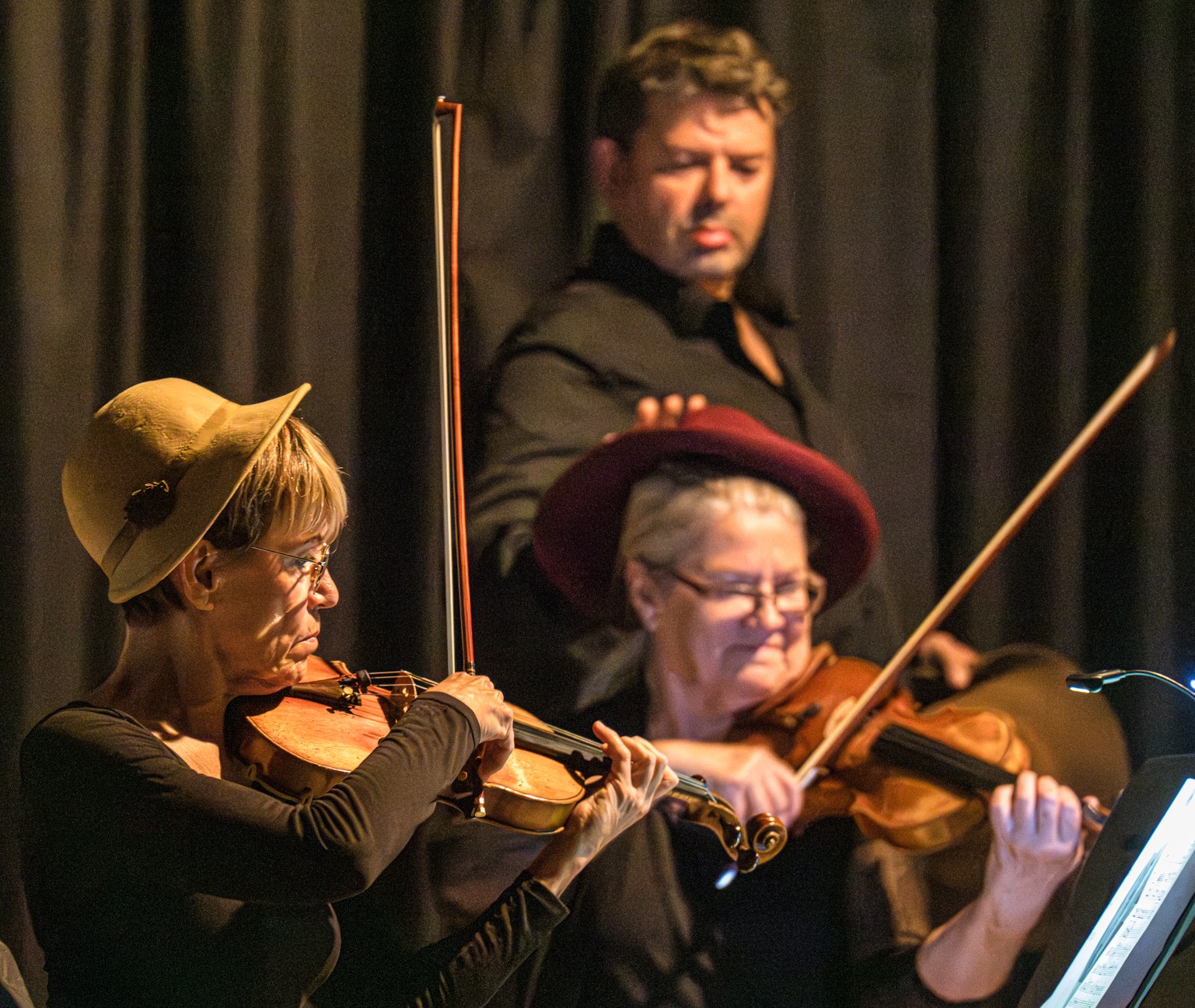 Récit et dialogue de Charles-Ferdinand RAMUZ pour récitant et instrumentistes . Musique de PROKOFIEV, BARTOK, KOMITAS, HAENDEL, ROSSINI, BONFA, GOUNOD, JOPLIN, HAYDN, BRAHMS, STRAUSS, BERLIOZ. Avec Frank Gétreau (comédien), Cécile Jeanneney (1er violon), Cathy Benoist (2d violon), Denis Émeric (alto) et Julie Émeric (violoncelle)