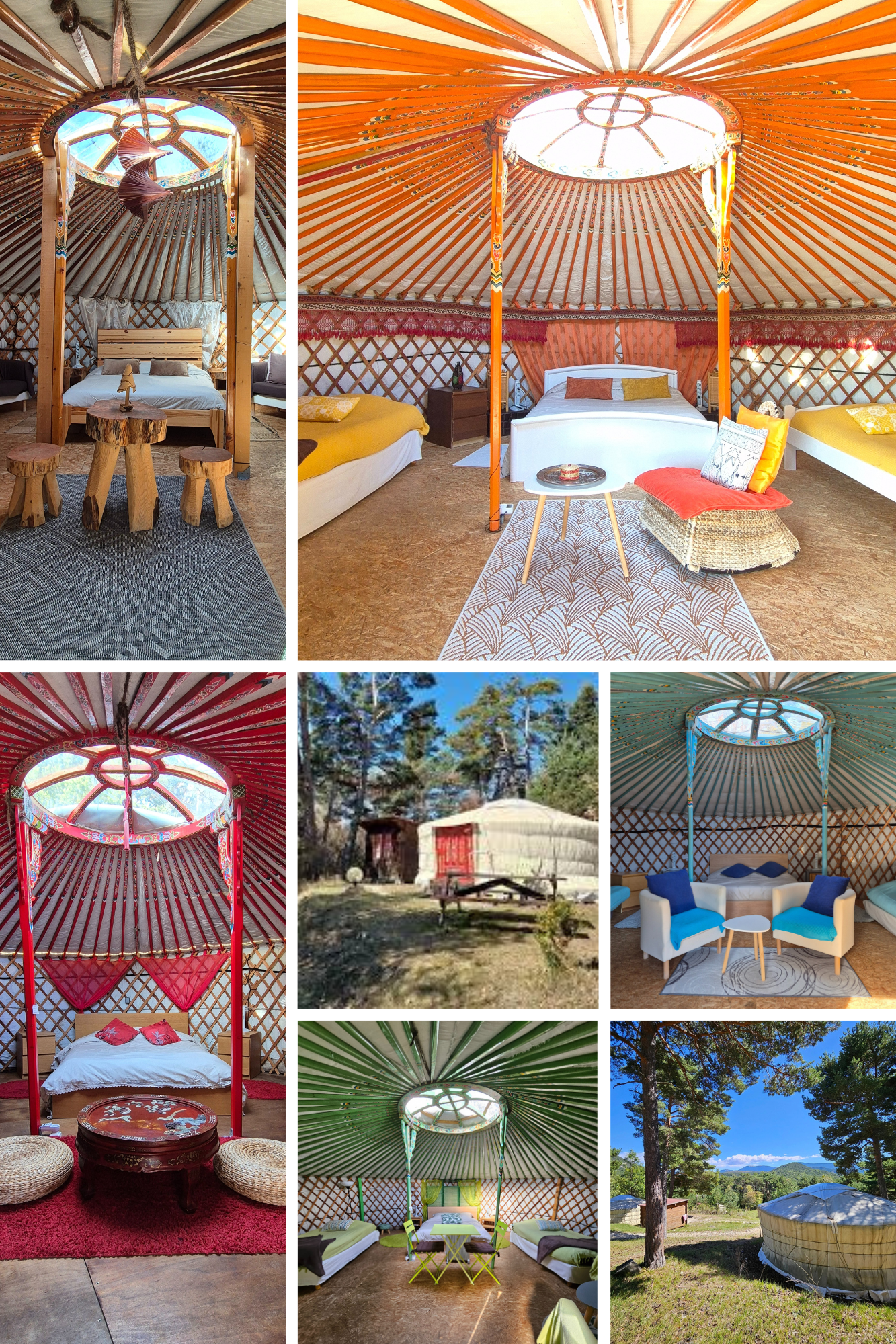 Destination Ailleurs è composta da 6 yurte con 1 yurta per 2 persone, 5 yurte per 4 o 5 persone, 1 chalet per 3 persone con cucina,
