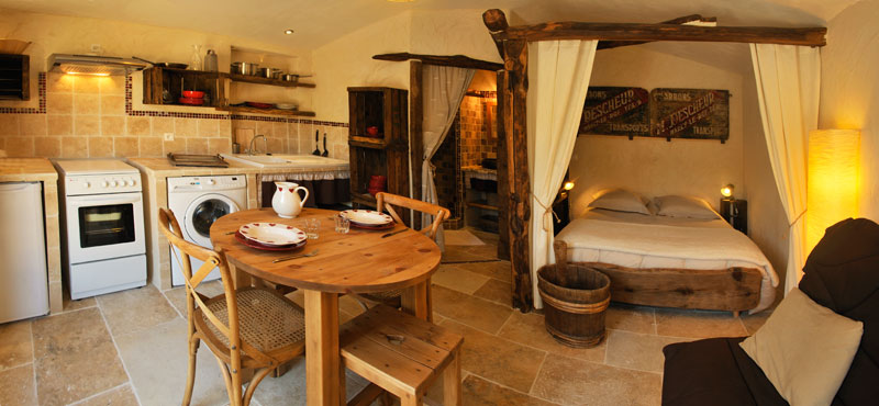 – 1 soggiorno con angolo cottura e 1 letto matrimoniale