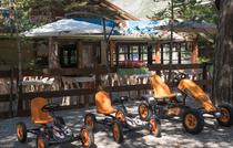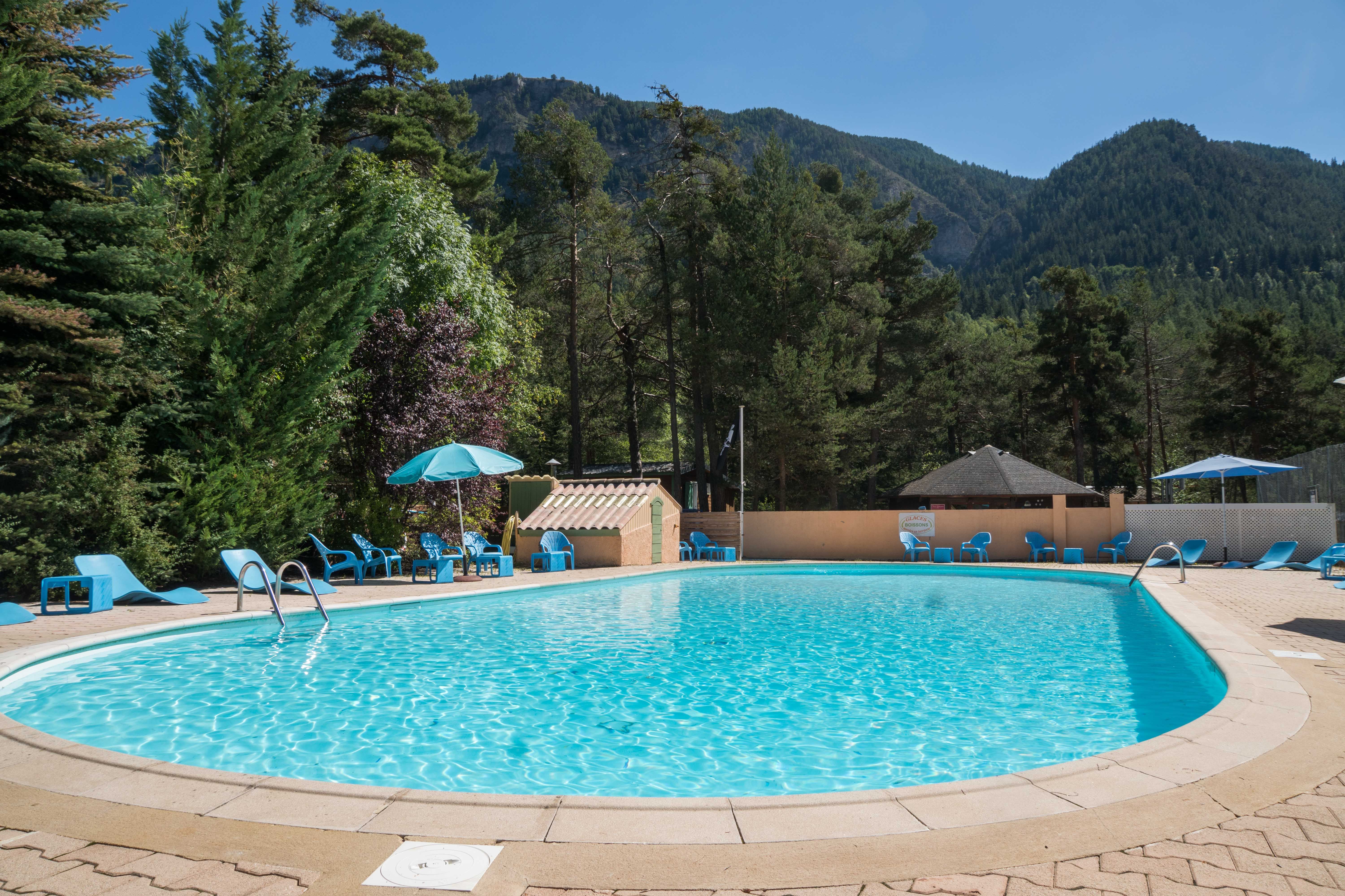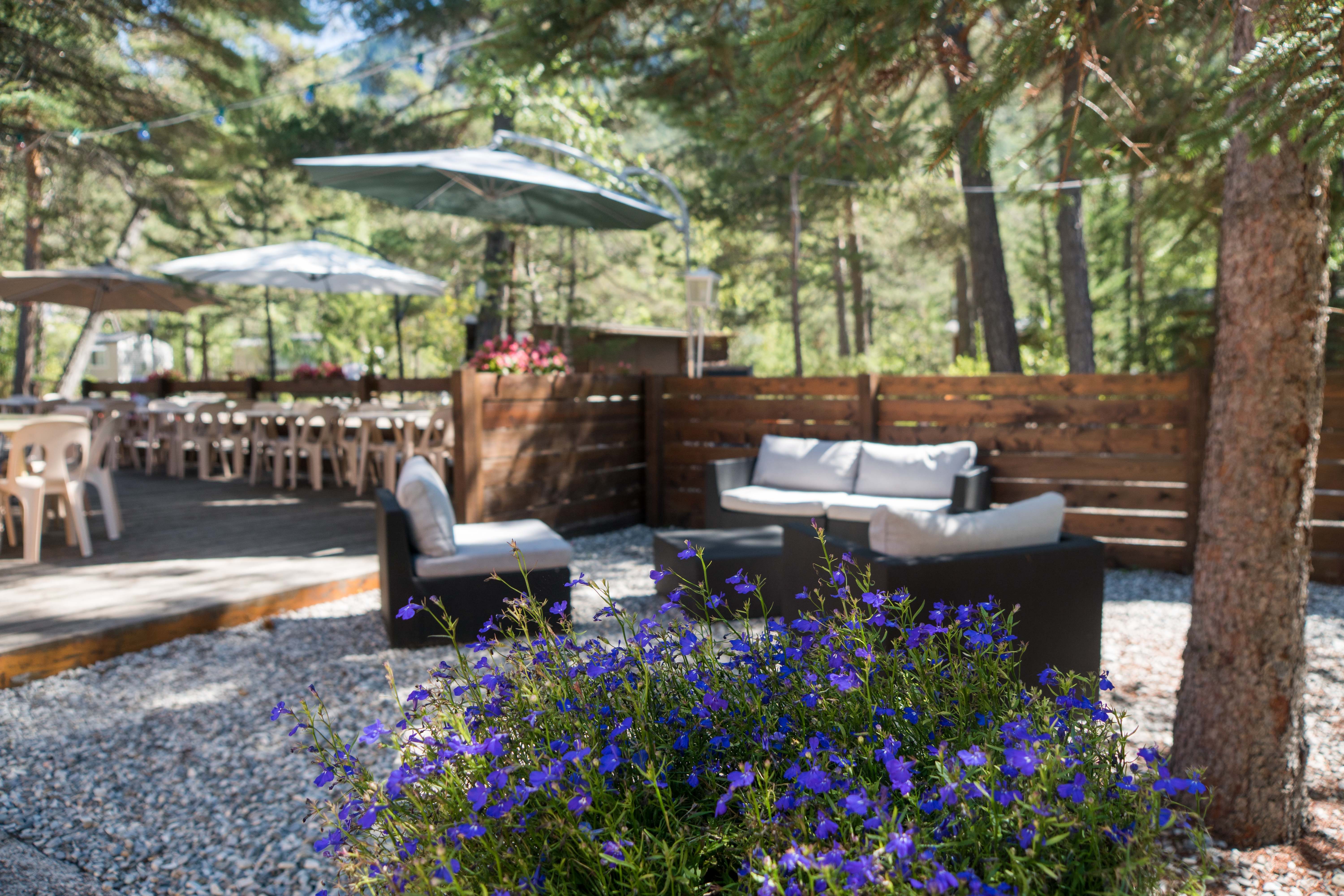 Ristorante con terrazza ombreggiata situato vicino alla piscina in un campeggio familiare. Cucina tradizionale casalinga e pizze cotte a legna.